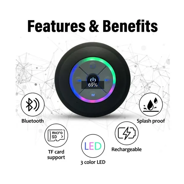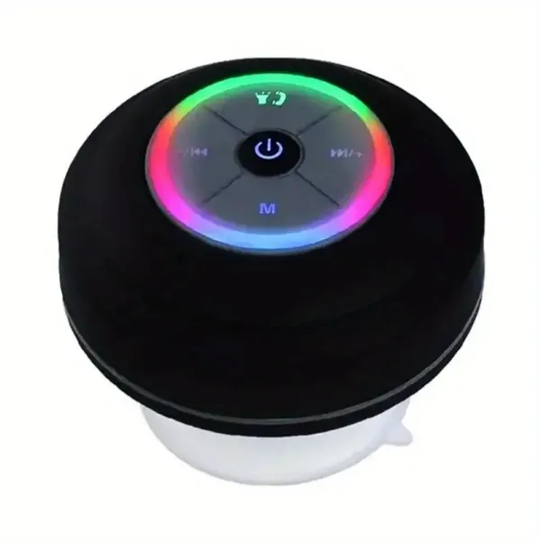 USB Rechargeable, with Suction Cup Mount, Wireless Bathroom Speaker featuring Clear Audio and Easy Button Control (Black)